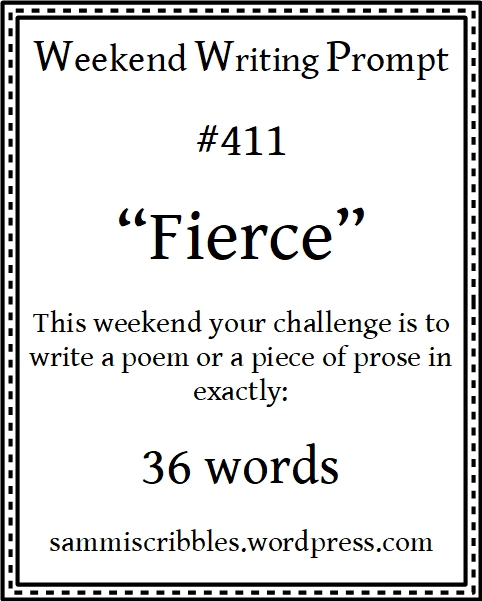 It’s time once again for Sammi’s Weekend Writing Prompt. Click here to join in! Our word prompt is Fierce. We must use exactly 36 words.